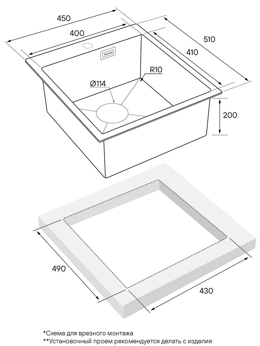 Мойка кухонная Paulmark Neckar PM804551-BS брашированная нержавеющая сталь
