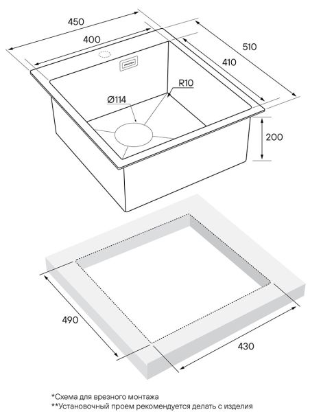 встраиваемая сверху