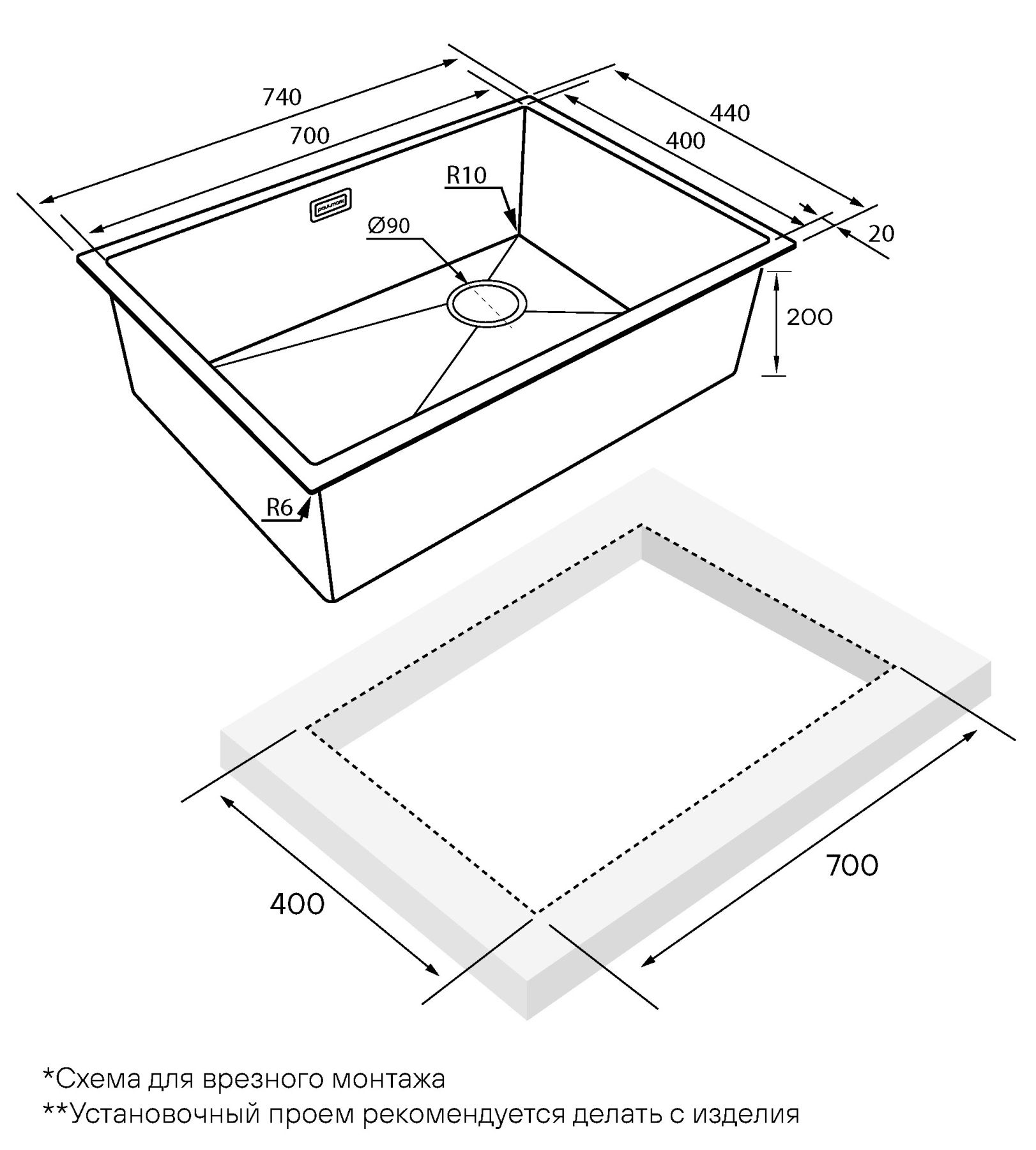 • Отверстия под смеситель:
