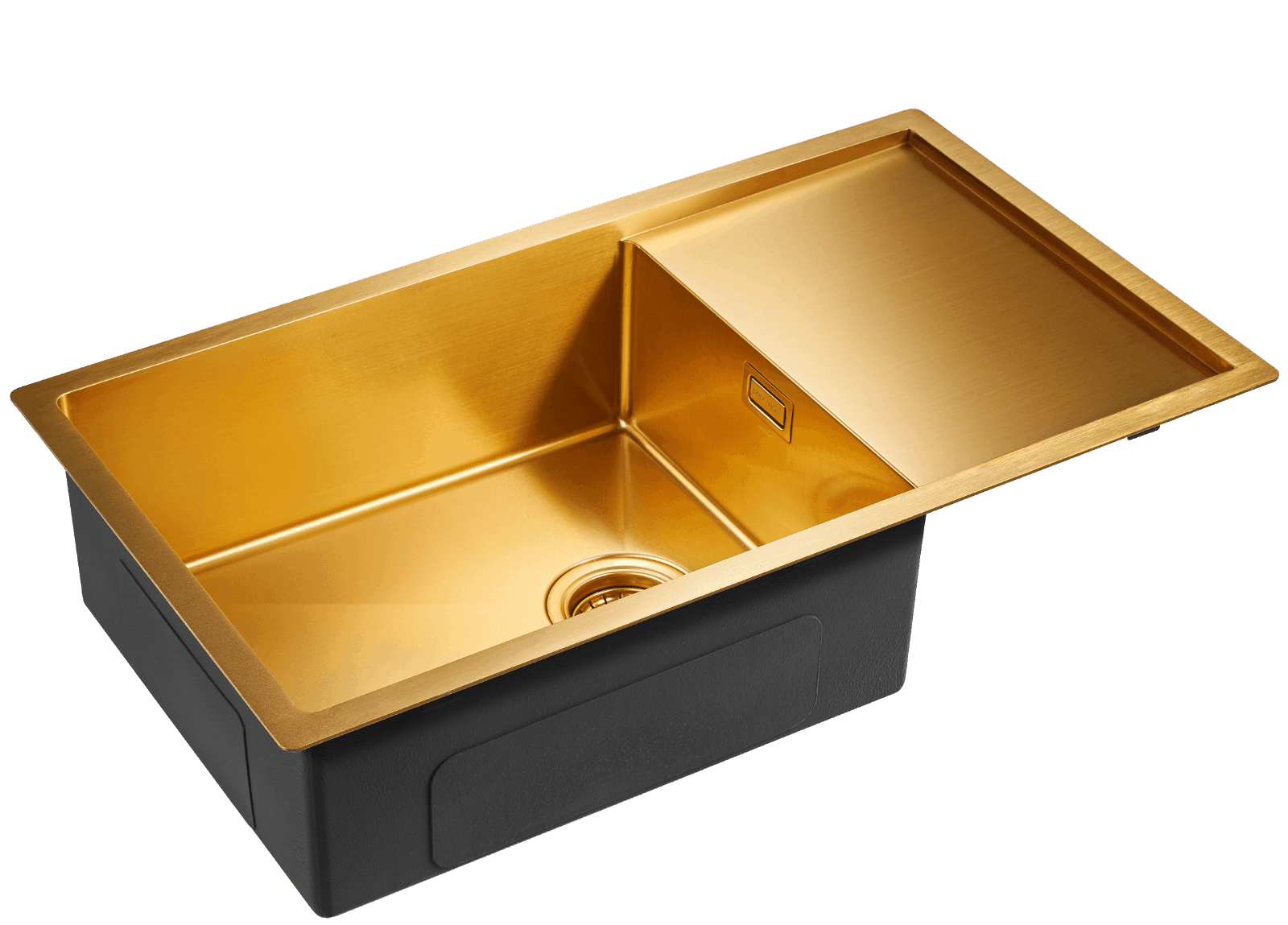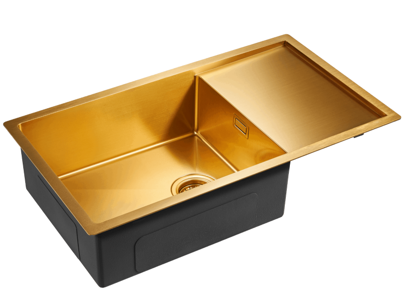 Мойка кухонная из нержавеющей стали, PM807844-BG304-ая аустенитная нержавеющая сталь имеет низкое содержание углерода. В составе мойки содержится 18% хрома и 8% никеля, что делает данную мойку из нержавеющей стали не подверженной деформации и обеспечивает прекрасные эксплуатационные характеристики.Мойки PLATTE в оттенках BG и GM имеют прочное PVD покрытие, которое нанесено на нержавеющую сталь. Оно особенно устойчиво к появлению царапин и истиранию, не содержит микротрещин и является экологически чистым.Имеет шумопоглощающее покрытие Stille® на внешней стороне чаши;