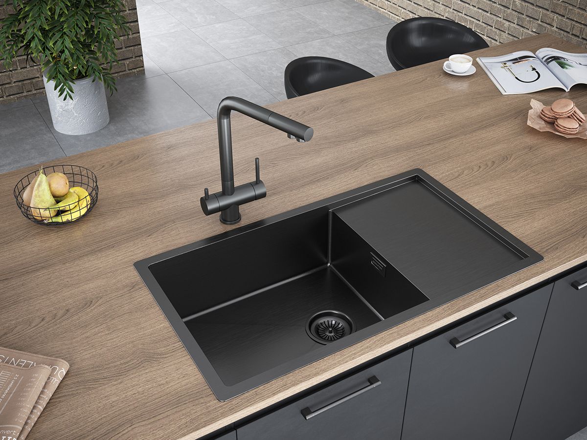 Мойка кухонная Paulmark Platte PM807844-GM воронёная сталь купить
