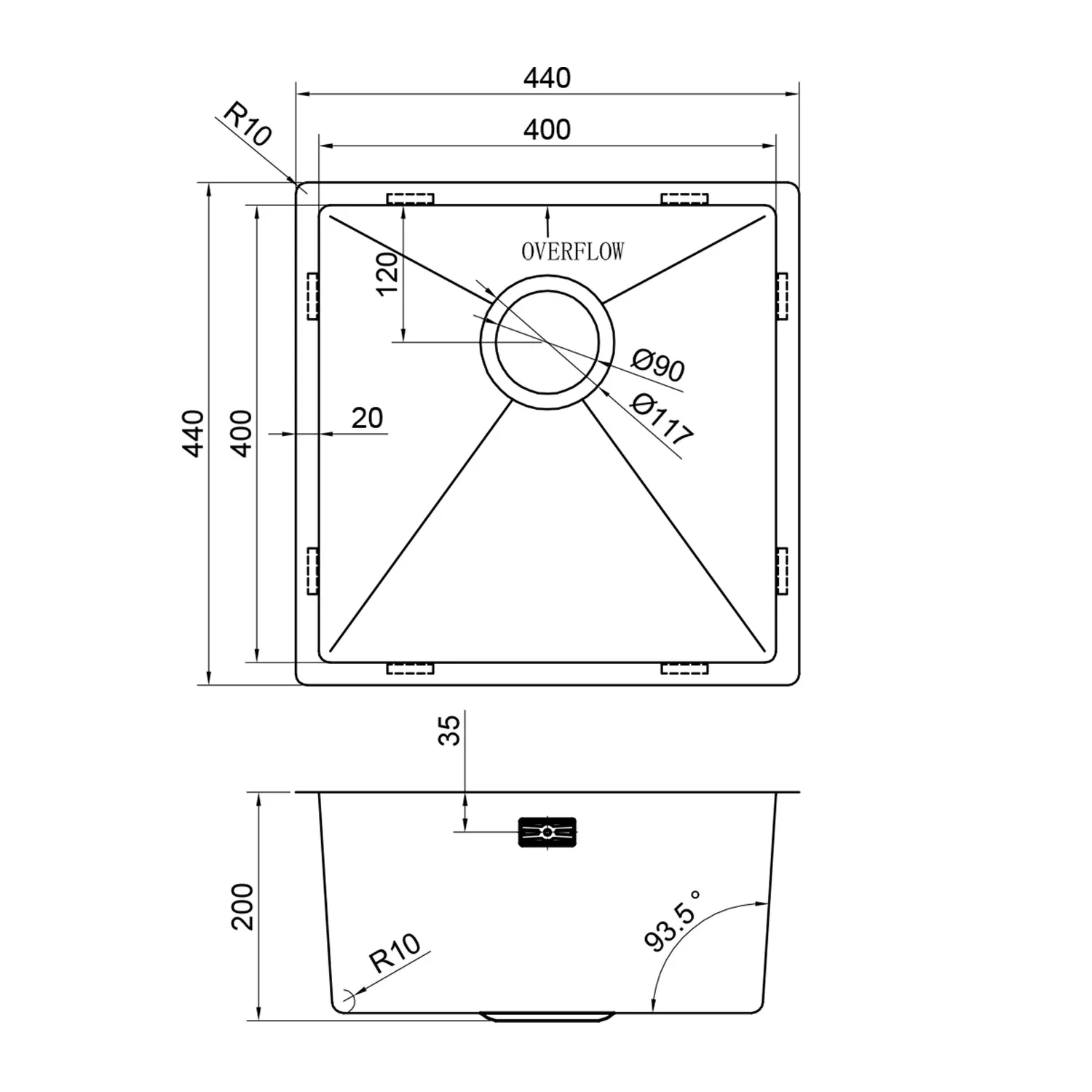 ШxВxГ: 440x440x200 мм