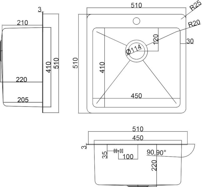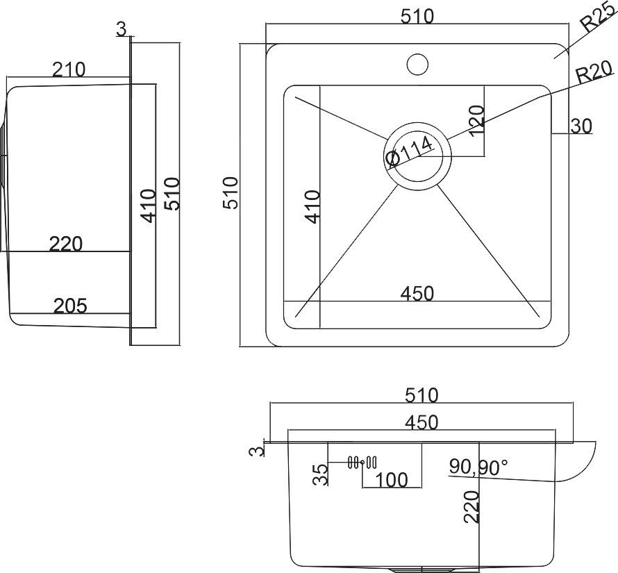 • Отверстия под смеситель: