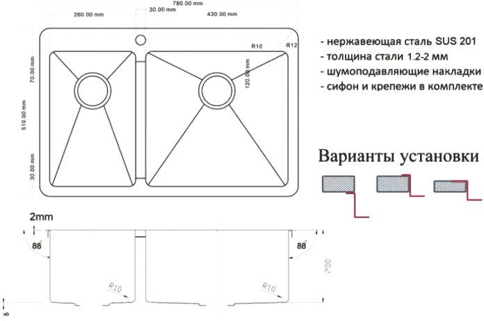 Монтаж:встраиваемая сверху