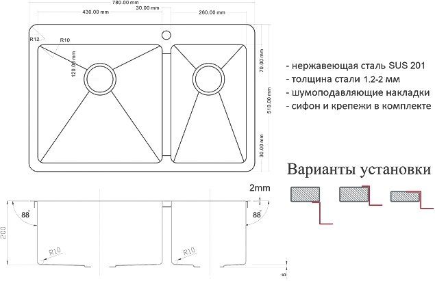 Мойка кухонная Zorg Light ZL R 780-2-510-L