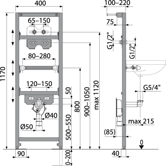 Монтажная рама для умывальника и смесителя AlcaPlast co встроенным сифоном A104AVS/1200 купить