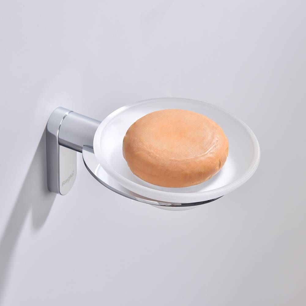 Raglo R300.02 Мыльница стеклянная с держателем. Форма округлая, цвет - хром. Крепление в комплекте.