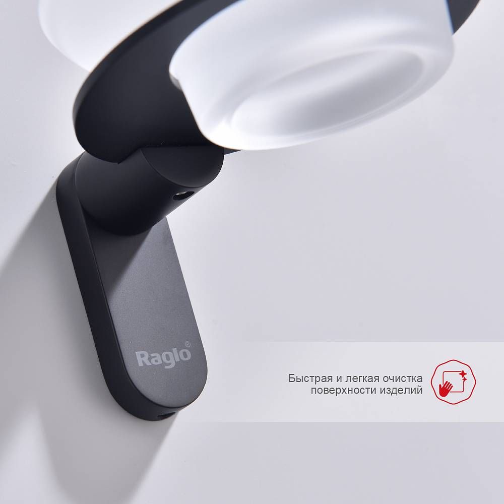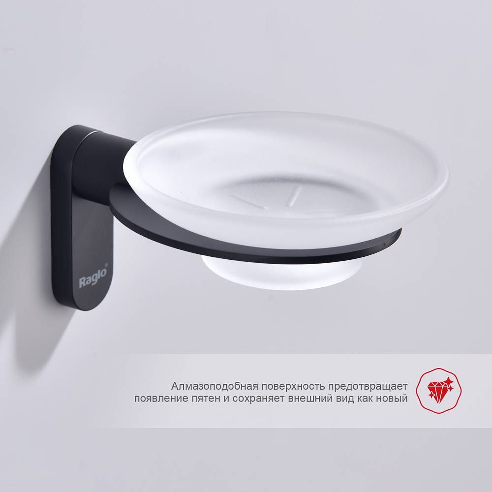 Raglo R300.02.09 Мыльница стеклянная с держателем. Форма округлая, цвет - графит, полуматовое покрытие. Крепление в комплекте.