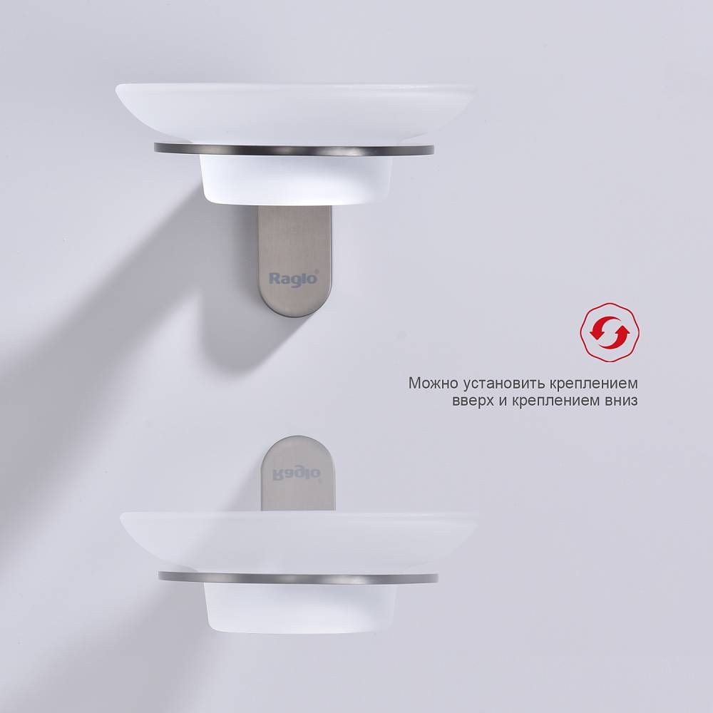 Raglo R300.02.06 Мыльница стеклянная с держателем. Форма округлая, цвет - черный, полуматовое покрытие. Крепление в комплекте.