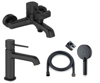 Набор смесителей для ванной комнаты Karl от немецкой компании Orange – отличный выбор для интерьера в стиле минимализм. Латунное изделие устойчиво к коррозии и высоким температурам, а черное матовое покрытие делает незаметными разводы и высохшие капли. Керамический картридж обеспечивает долговечность изделия, стабильную подачу воды и мощный напор. Излив оснащен пластиковым аэратором, он создает ровную мощную струю и легко очищается от известкового налета. В комплекте душевой набор (душевая лейка d 110 мм 3 режима, шланг в металлической оплетке 1500 мм., настенный держатель лейки с регулировкой угла наклона).