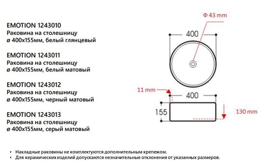 Накладная раковина Avimano Emotion 1243012 40см чёрный матовый купить