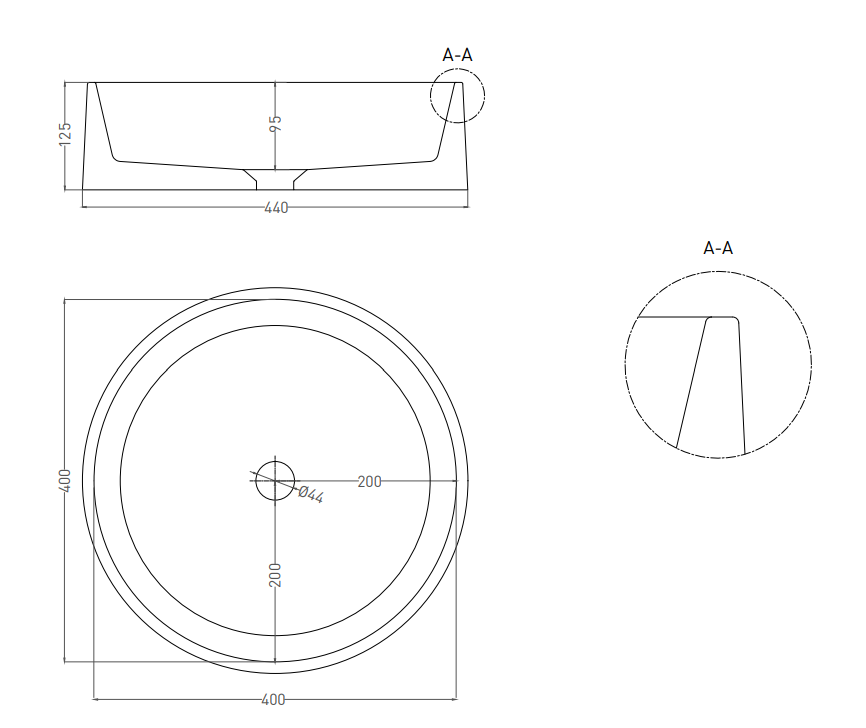 Накладная раковина Salini Gloria 01 S-Stone 1102201MRH 44см RAL снаружи