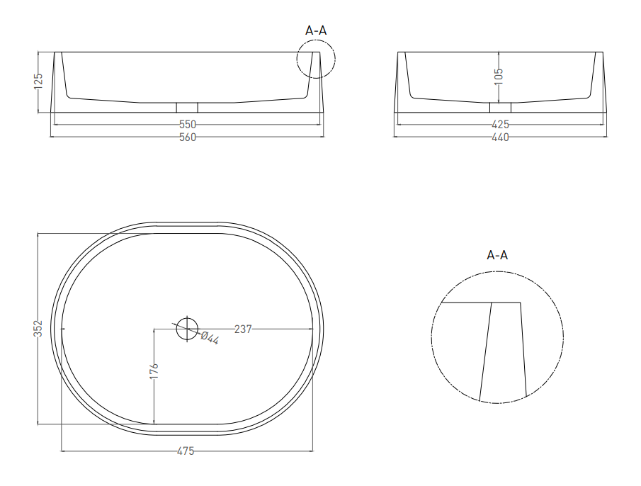 Накладная раковина Salini Gloria 10 S-Stone 1102211MRH 56см RAL снаружи