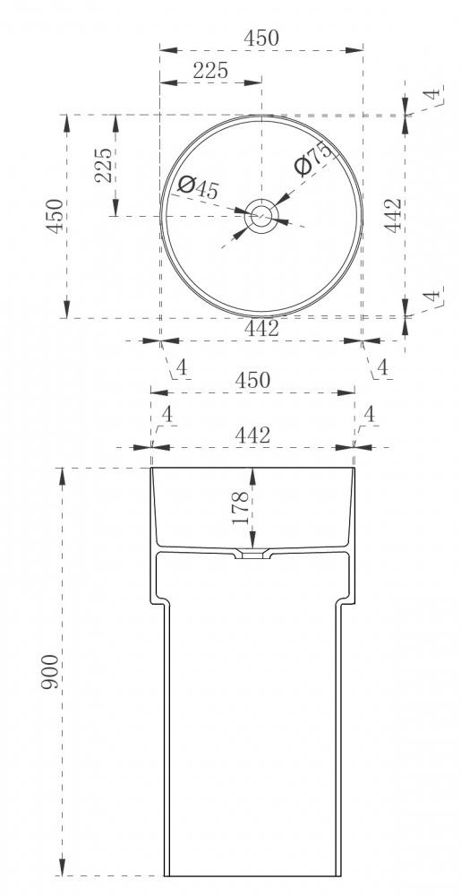 Напольная раковина ABBER Kristall 45x90см чёрный AT2701Onyx