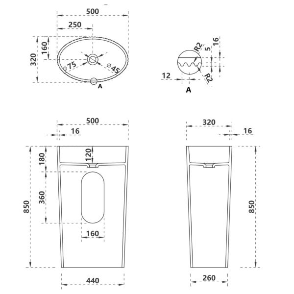 Напольная раковина ABBER Stein AS2504-H 50см белый матовый