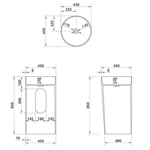 Напольная раковина ABBER Stein AS2506-H 45см белый матовый