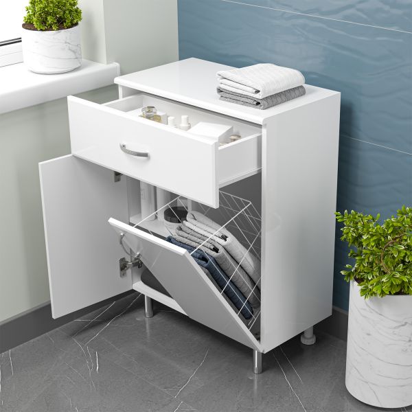 Напольная тумба Misty Люси с бельевой корзиной 60см белый