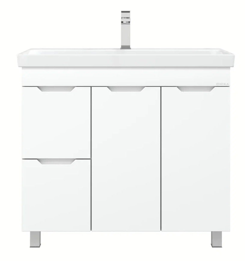 Напольная тумба для ванной комнаты Onika Айленд 90 сочетает в себе стильный минималистичный дизайн, белую глянцевую поверхность и высочайшее качество исполнения.