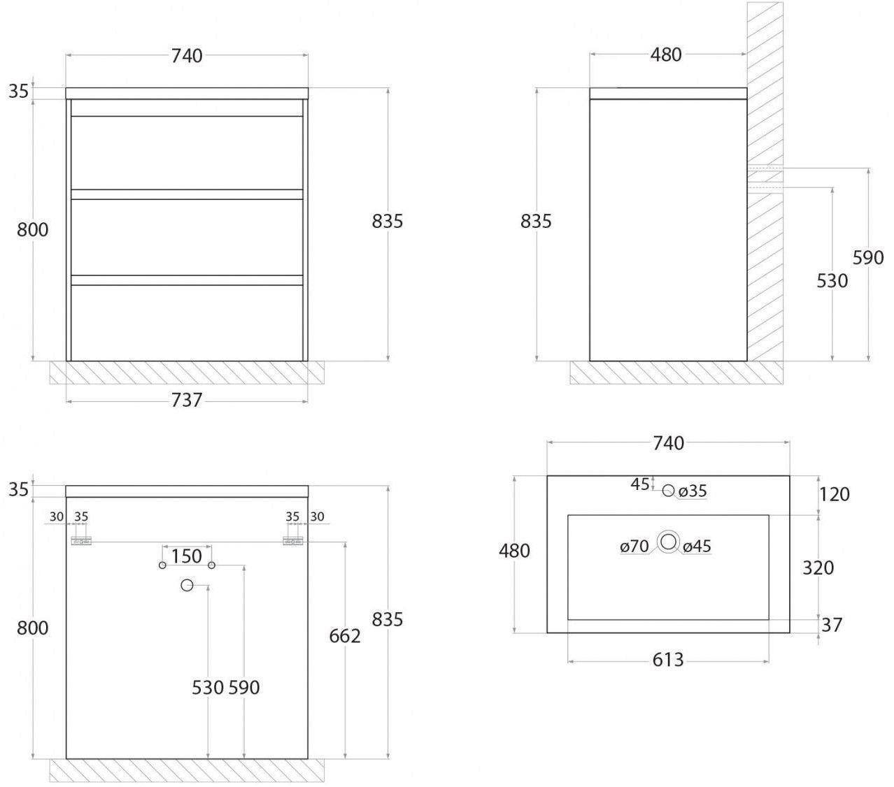 Тумба под раковину Art&Max выполнена в современном стиле и прекрасно впишется в интерьер любой ванной комнаты. Напольная конструкция обеспечивает легкий монтаж и не требует специального ремонта в помещении. Модель оснащена тремя выдвижными ящиками с доводчиками. Фасад изделия выполнен из ЛДСП.Тумба может использоваться вместе с раковиной AM-LAV-750-MR-A.Раковина и смеситель в комплект поставки не входят и приобретаются отдельно.Особенности: