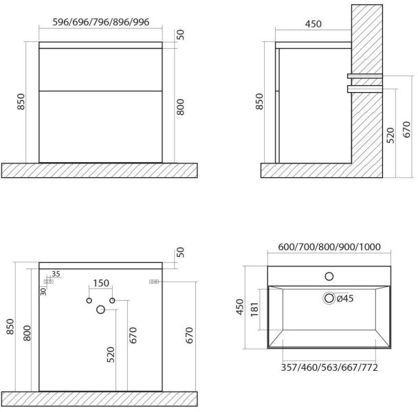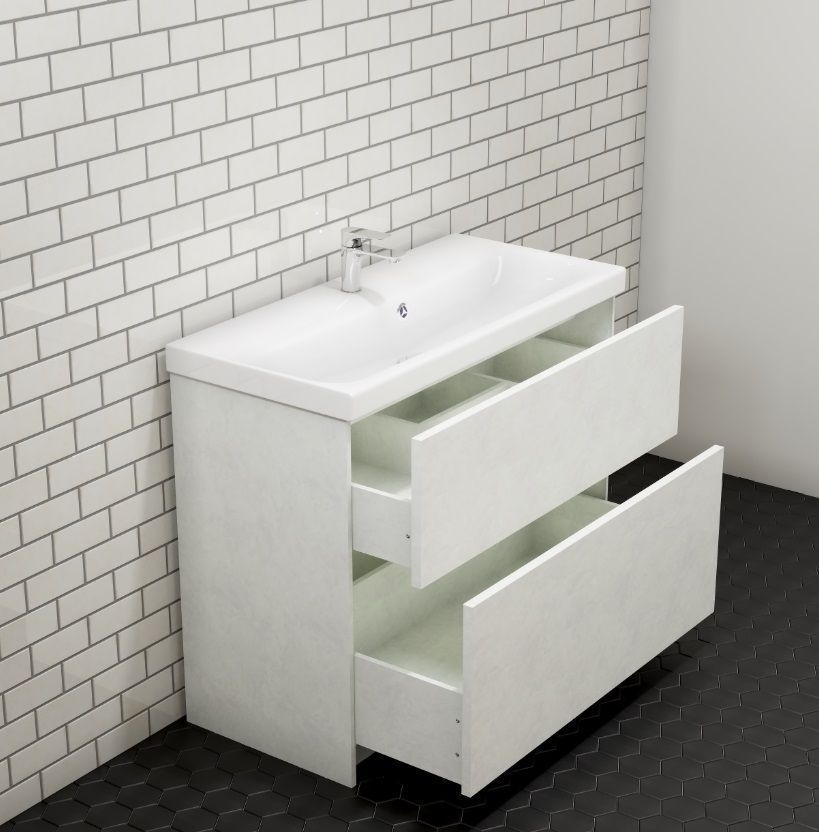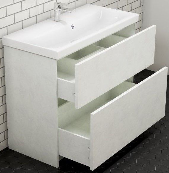 Тумба под раковину Art&Max выполнена в современном стиле и прекрасно впишется в интерьер любой ванной комнаты. Модель оснащена двумя выдвижными ящиками с направляющими скрытого монтажа, не полного выдвижения с доводчиками. Фасад изделия выполнен из МДФ, ящики - из ЛДСП.