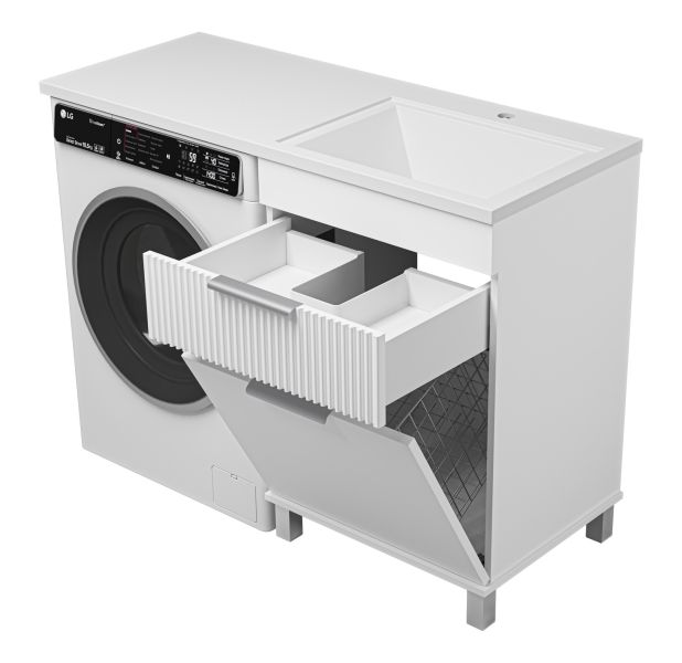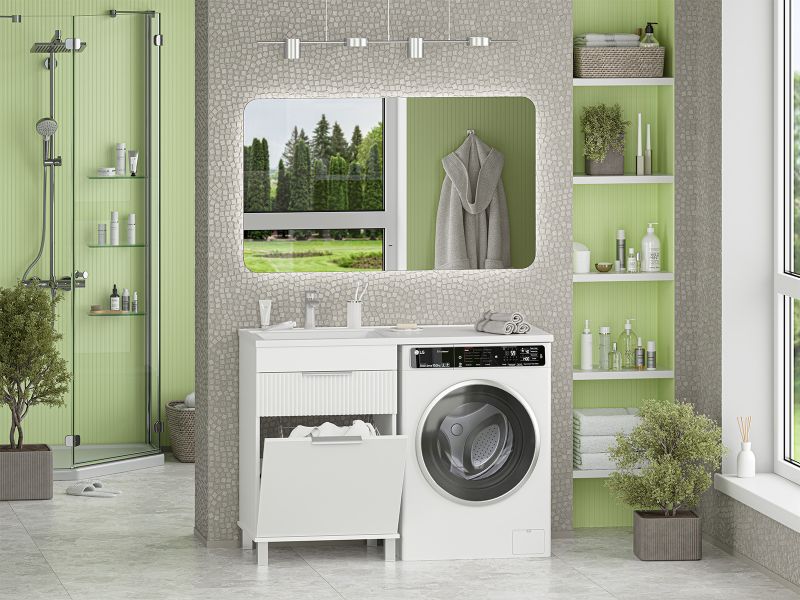 Напольная тумба под раковину Brevita Enfida 60см под стиральную машину с бельевой корзиной бежевый