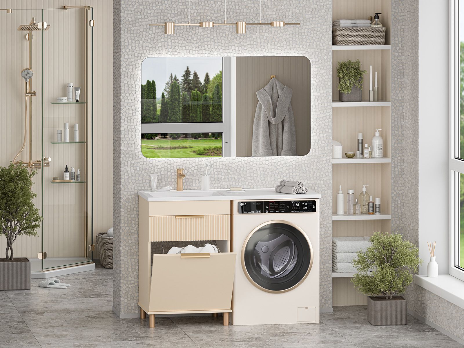 Напольная тумба под раковину Brevita Enfida 60см под стиральную машину с бельевой корзиной бежевый купить