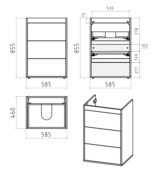 Напольная тумба под раковину Brevita Grafit GRA-01060-023Я под стиральную машину 60см белый