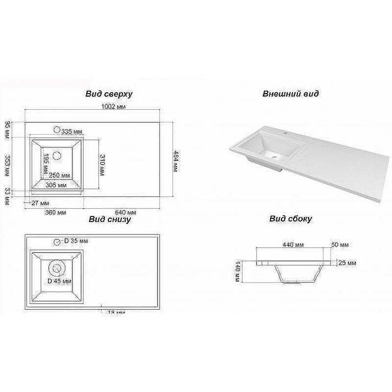 Размер (ШхВхГ): 1002х140х484 мм.