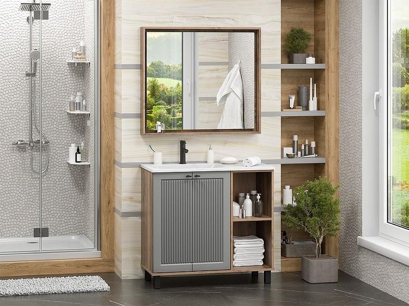 Напольная тумба под раковину Brevita Lumus 90 L УТ000025489 Серая матовая Дуб Галифакс олово купить