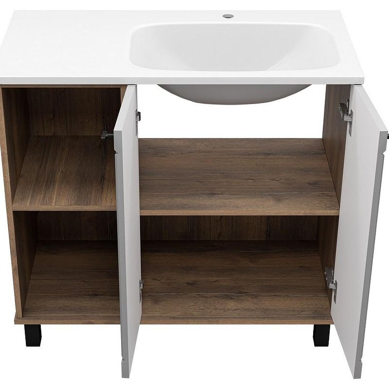 Тумба с раковиной Brevita Lumus 90 R УТ000025490 напольная с подсветкой. Lumus - свет, стиль и практичность. Коллекция Lumus создана для тех, кто ценит современные решения, функциональность и стильные акценты в интерьере. Особенность этой мебели - открытые ниши с подсветкой, которые не только создают уютную атмосферу, но и делают хранение удобнее. Контрастное сочетание оттенков придаёт коллекции выразительность: эмалированные фасады и корпус из ЛДСП идеально дополняют чёрные металлические ручки и регулируемые опоры. Все элементы продуманы до мелочей: петли с доводчиками гарантируют плавное закрывание дверей, а премиальные материалы обеспечивают долговечность и надёжность. Это мебель, которая смотрится эффектно в любом интерьере, подчёркивая внимание  к деталям. Lumus - это больше, чем просто мебель. Это игра света и тени, стиль, который привлекает внимание, и комфорт, который ощущаешь каждый день. Характеристики: Тумба под раковину: