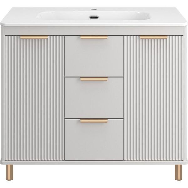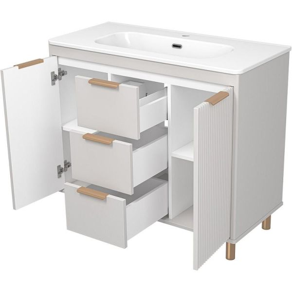 Тумба с раковиной Brevita Risacca Crema 100 УТ000025682 напольная. Risacca – итальянская элегантность и безупречное исполнение. Итальянский стиль узнаваем с первого взгляда: он лаконичен, утончён, пропорционален и по-настоящему выразителен. Коллекция Risacca вобрала в себя всё лучшее от эстетики итальянского дизайна: гармония линий, внимательное отношение к деталям и продуманный комфорт. Фасады тумб выполнены в эмали с элегантной фрезеровкой, подчёркивающей премиальный статус коллекции. Тумбы представлены в разных размерах, позволяя адаптировать пространство ванной комнаты под любые запросы. Благодаря качественной фурнитуре, доводчикам и направляющим скрытого монтажа, каждый элемент мебели работает плавно и безупречно. Тумбы комплектуются керамическими раковинами Brevita Onda, которые идеально дополняют общий стиль, создавая единый, цельный образ. Это мебель, в которой внимание к деталям делает повседневный комфорт особенным. Коллекция Risacca – это не просто мебель для ванной комнаты, это итальянское вдохновение, которое превращает интерьер в произведение искусства. Характеристики: Тумба под раковину: