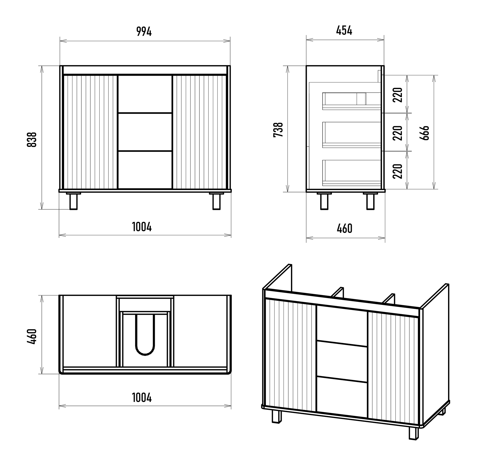 Размер тумбы, мм (ш/г/в): 1004x460x738