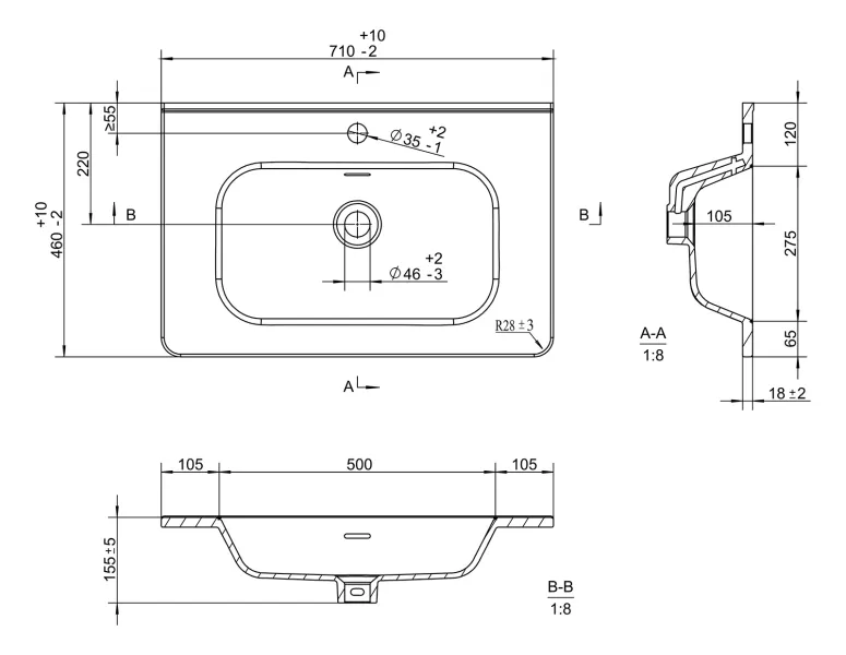 Размер раковины, мм (ш/г/в): 710x460x155