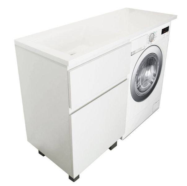 Коллекция мебели для ванной комнаты Dallas Luxe покоряет своей удивительной простой и функциональностью. Стильная лаконичная тумба, укомплектована раковиной из литьевого мрамора с удобной чашей. Стиральная машина устанавливается под столешницей, за счет чего экономит место в ванной комнате. В тумбе имеются два ящика. Нижний ящик тумбы – широкий и вместительный – предназначен для крупных предметов, а в верхнем имеется специальная организация пространства, позволяющая хранить мелкие вещи.