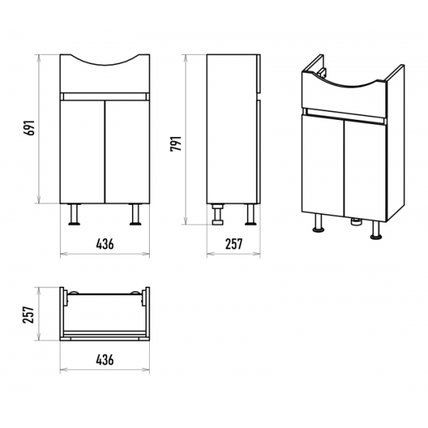 Напольная тумба под раковину Misty Амур Э-Аму01045-021Эл 43.6 см белый