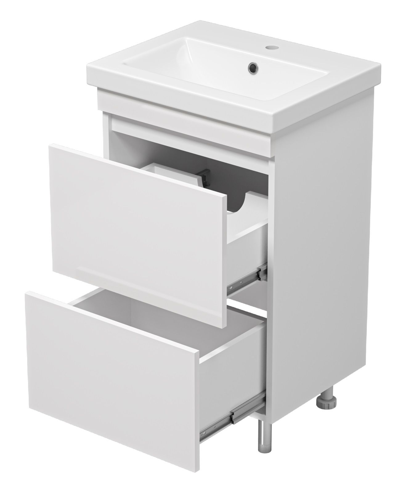 Напольная тумба под раковину Misty Енисей 50см с двумя ящиками белый
