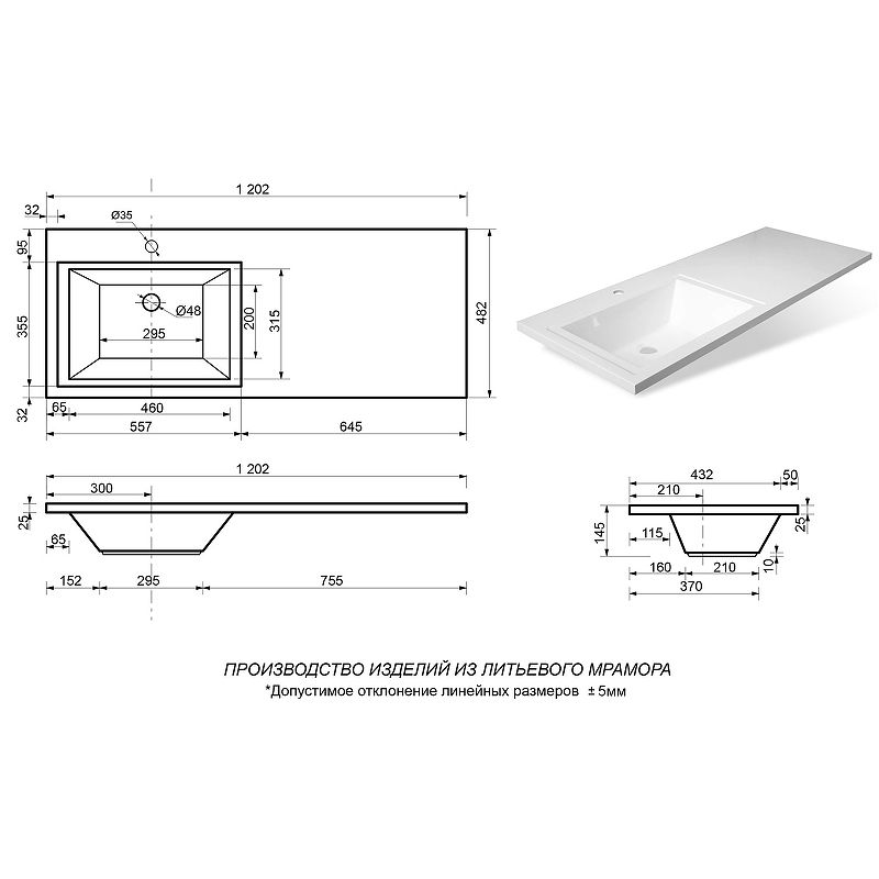 Габариты (ШхВхГ): 1202х145х482 мм.