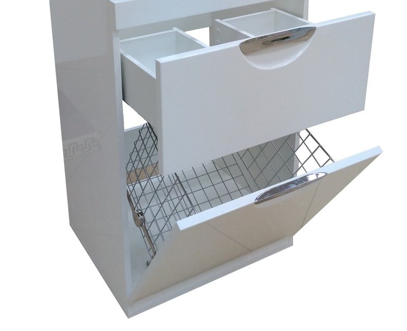 Напольная тумба под раковину Misty Куба под стиральную машину 60см с бельевой корзиной белый