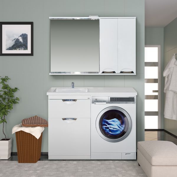 Напольная тумба под раковину Misty Куба под стиральную машину 60см с бельевой корзиной белый купить