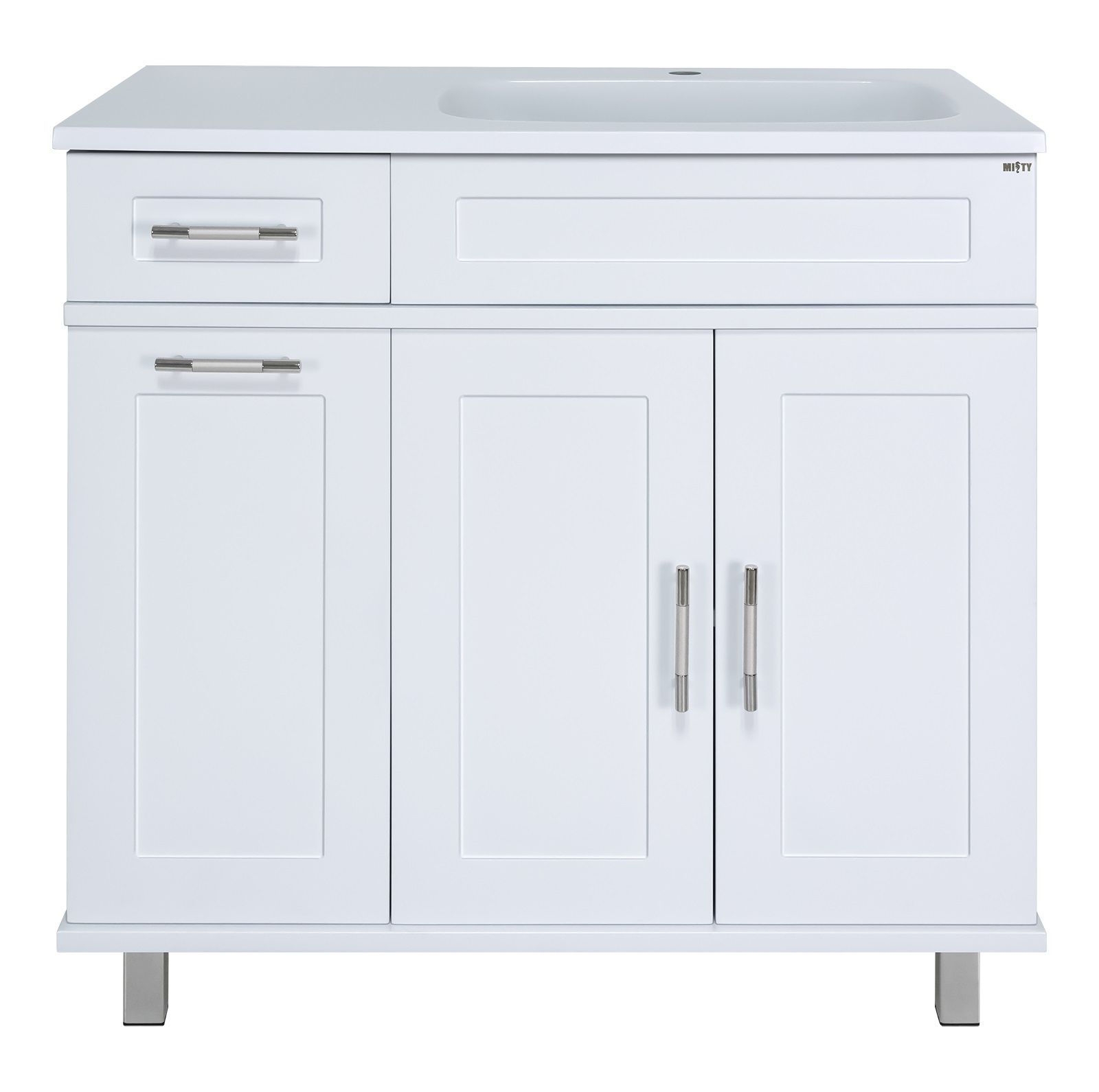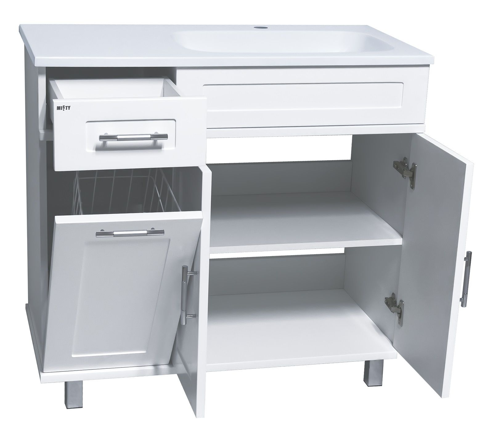Напольная тумба под раковину Misty Купер 90см правая с бельевой корзиной белый купить