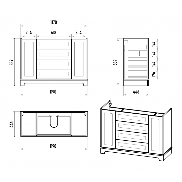 Напольная тумба под раковину Misty Ларго 120 см П-Лар-07120-01-3Я белый