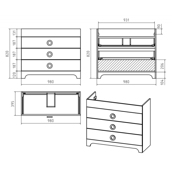 Размеры (ДхШхВ): 39.5см х 98.0см х 82.0см