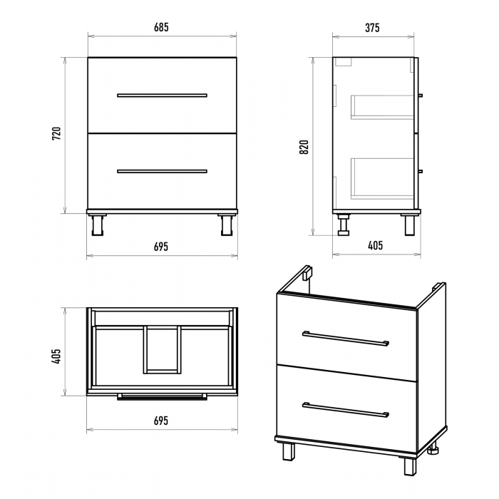 Напольная тумба под раковину Misty Модерн 70 см П-Мод07070-011Пр белый