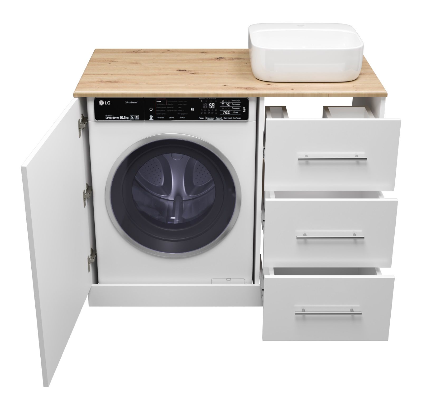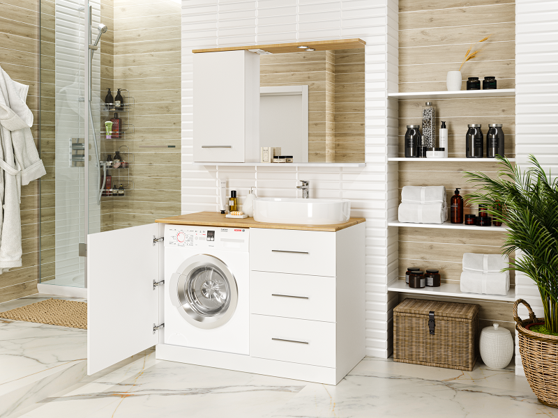 Напольная тумба под раковину Misty Респект под стиральную машину 110см правая белый/дуб Артизан