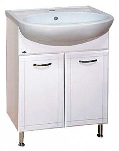 Тумба Уют 60 – экономичное и практичное решение для малогабаритной ванной комнаты или санузла. Представленное в белом цвете изделие напольного типа установки придаст помещению современный вид и обеспечит базовый уровень комфорта в нем. За парой распашных двустворчатых дверок помещаются не только коммуникации, но и предметы по уходу за собой и за помещением. Тумба комплектуется полувстраиваемой раковиной, а также ножками и парой ручек из хромированного металла.Данная модель дополняется прямоугольным зеркалом Магнолия 40 или 50, выдержанным в стиле минимализма, и оборудовано сверху и снизу планками, нижняя из которых служит в качестве удобной открытой полочки.Изготовленные из долговечных материалов изделия имеют многослойную, защищающую от воздействия влаги эмалевую отделку.