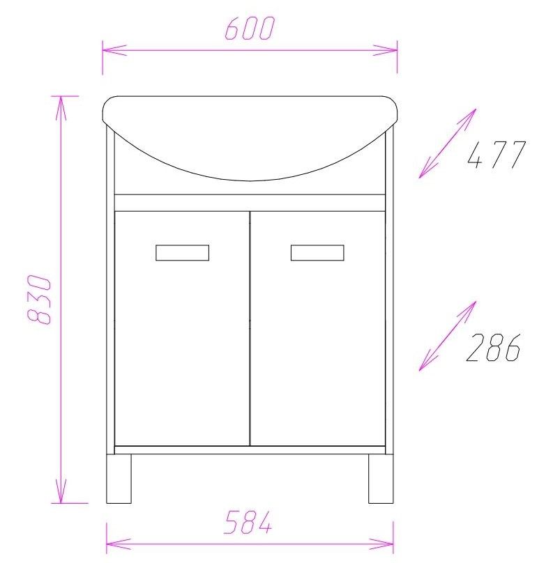 Размеры тумбы без учета раковины и ножек: 54x29x68 см.