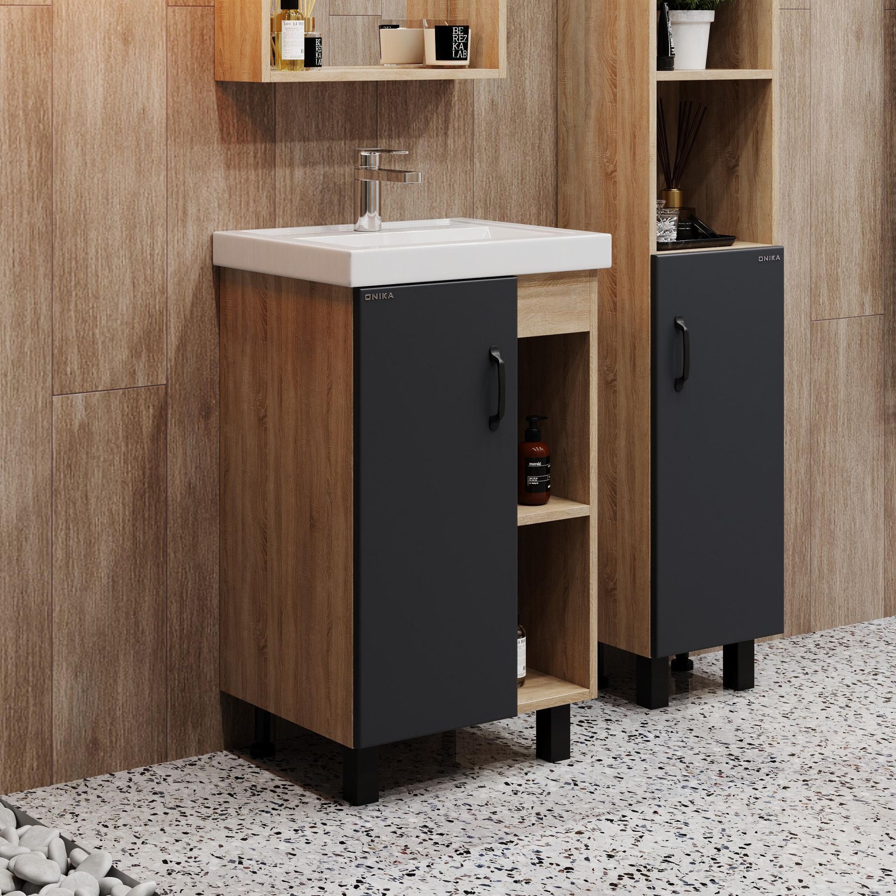 Напольная тумба под раковину Onika Тимбер 105035 50см серый матовый/дуб сонома купить