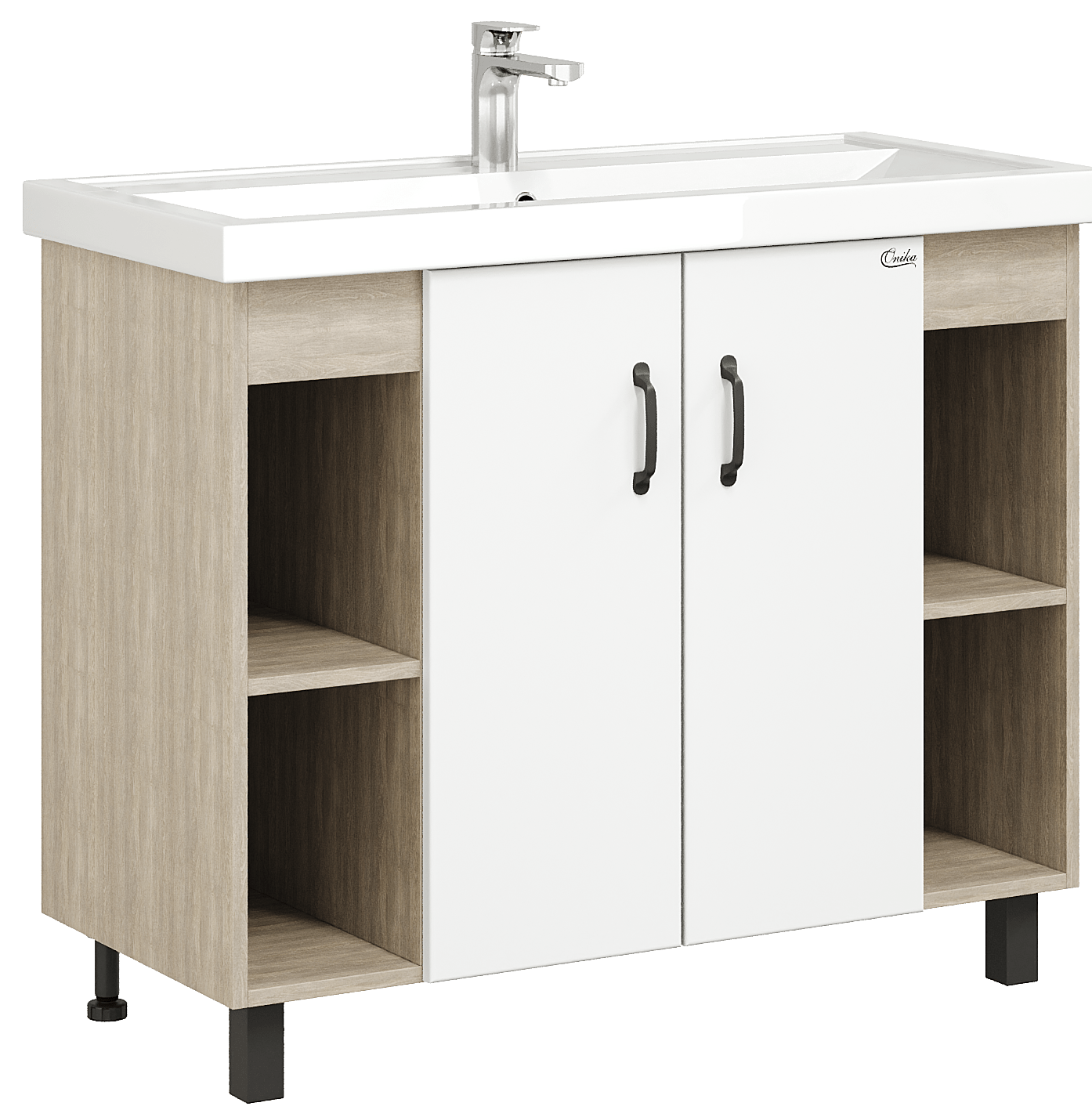 Напольная тумба под раковину Onika Тимбер 110011 100см белый матовый/дуб сонома