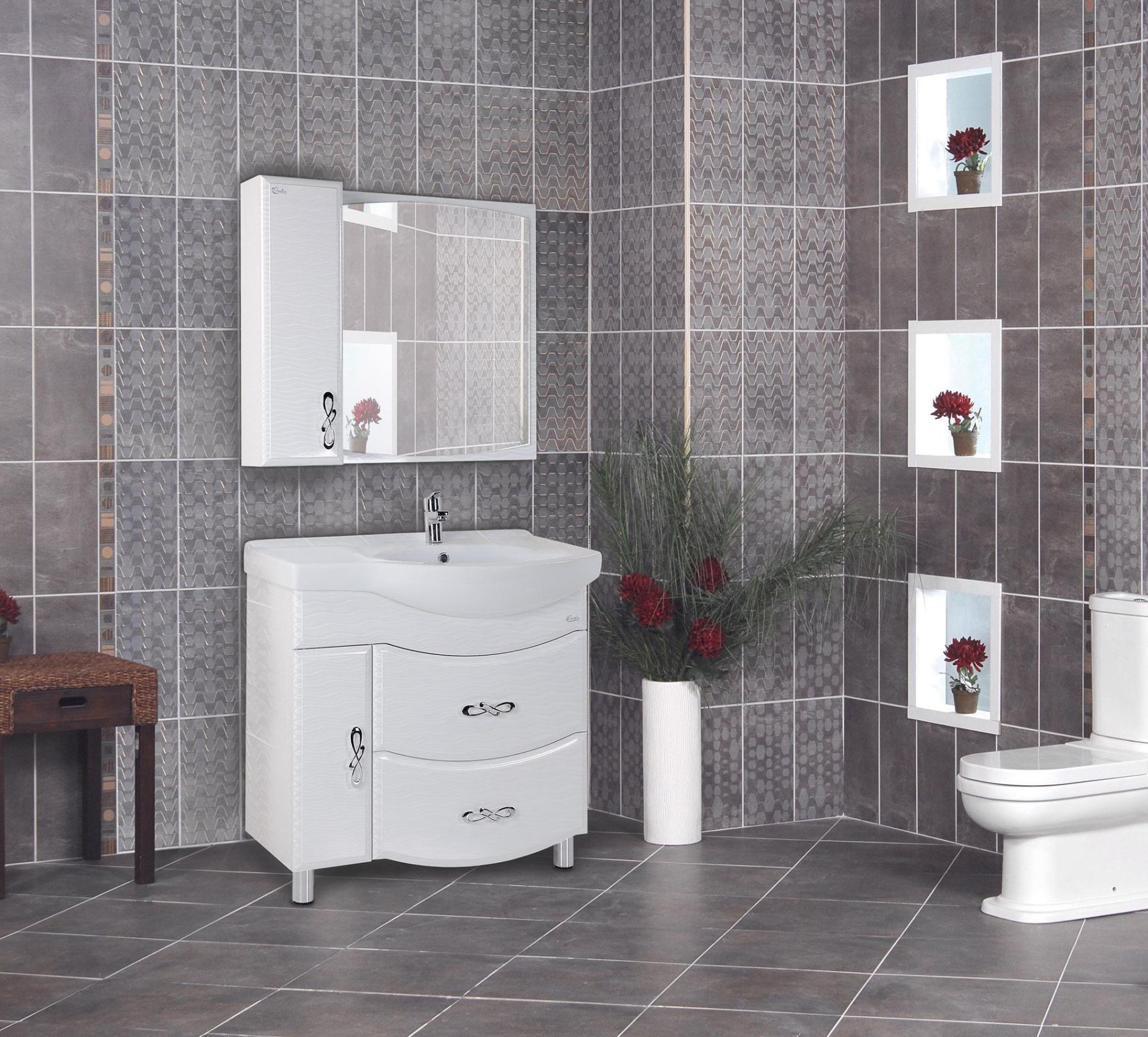 Напольная тумба для ванной комнаты Onika Вальс 82 - стильное и не банальное решение для ванной комнаты.
