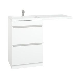 Напольная тумба Onika Милтон 48 станет отличным решением для совмещения со стиральной машиной.